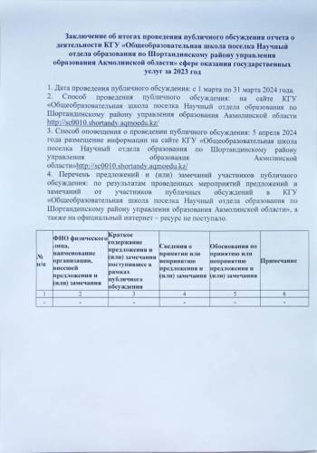 Коммунальное государственное учреждение «Общеобразовательная школа поселка Научный отдела образования по Шортандинскому району управления образования Акмолинской области»